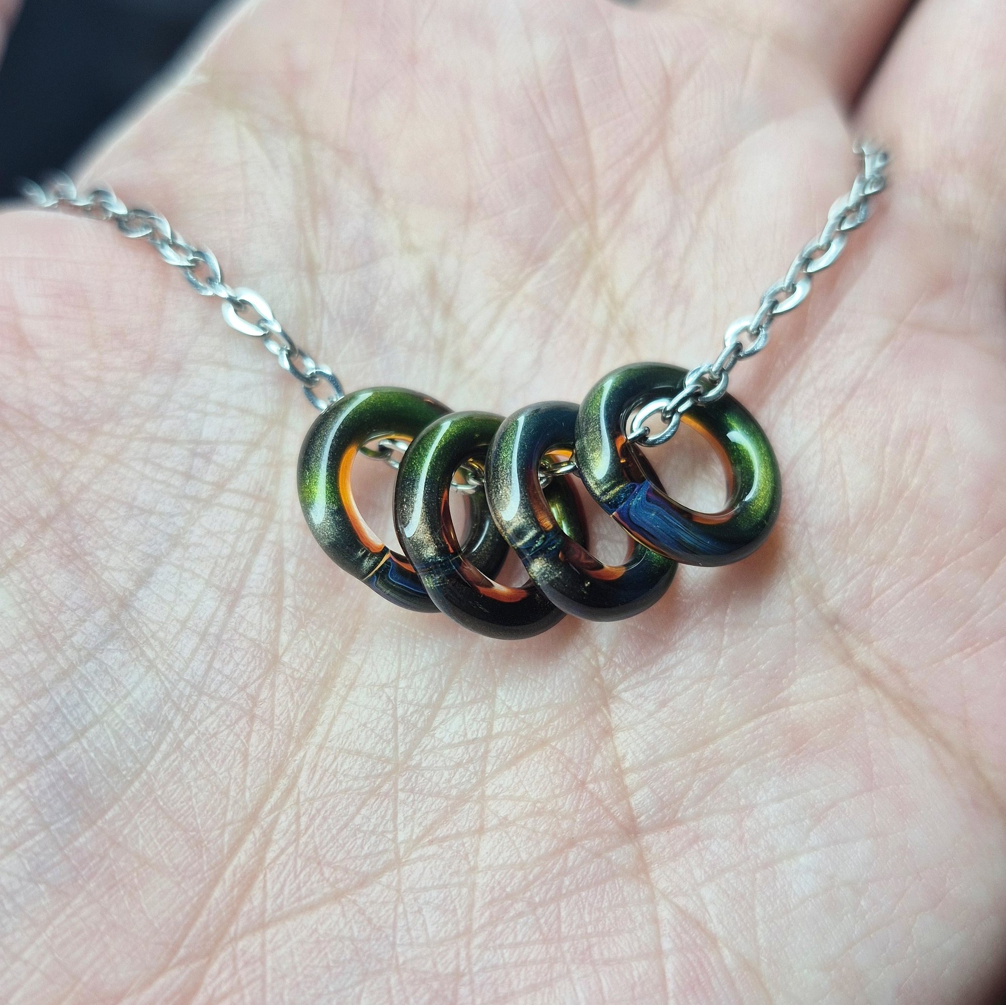 All piece's are unique and individual. All jewelry is made from borosilicate glass. Handmade with love. Chains are NOT included. Ships usps first class. No refunds.