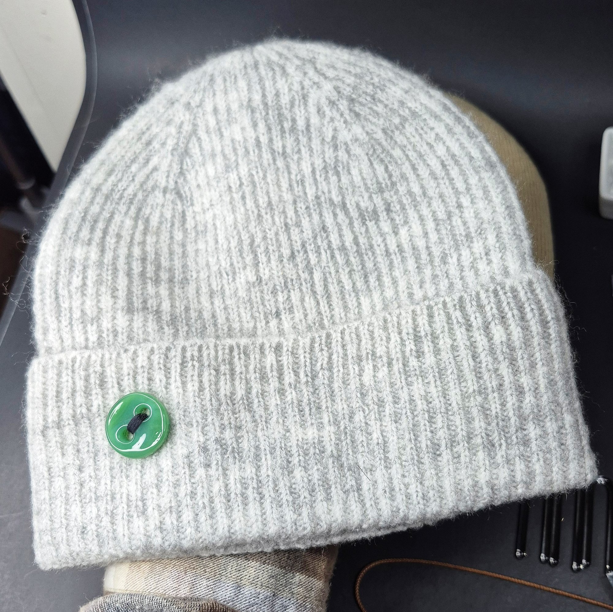 GREEN BUTTON BEANIE